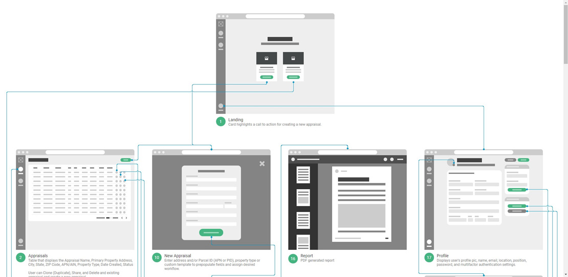 This UX Workflow was created for the development team in order to grasp the scope of the project without getting caught up in the minutia of the wireframe detail.